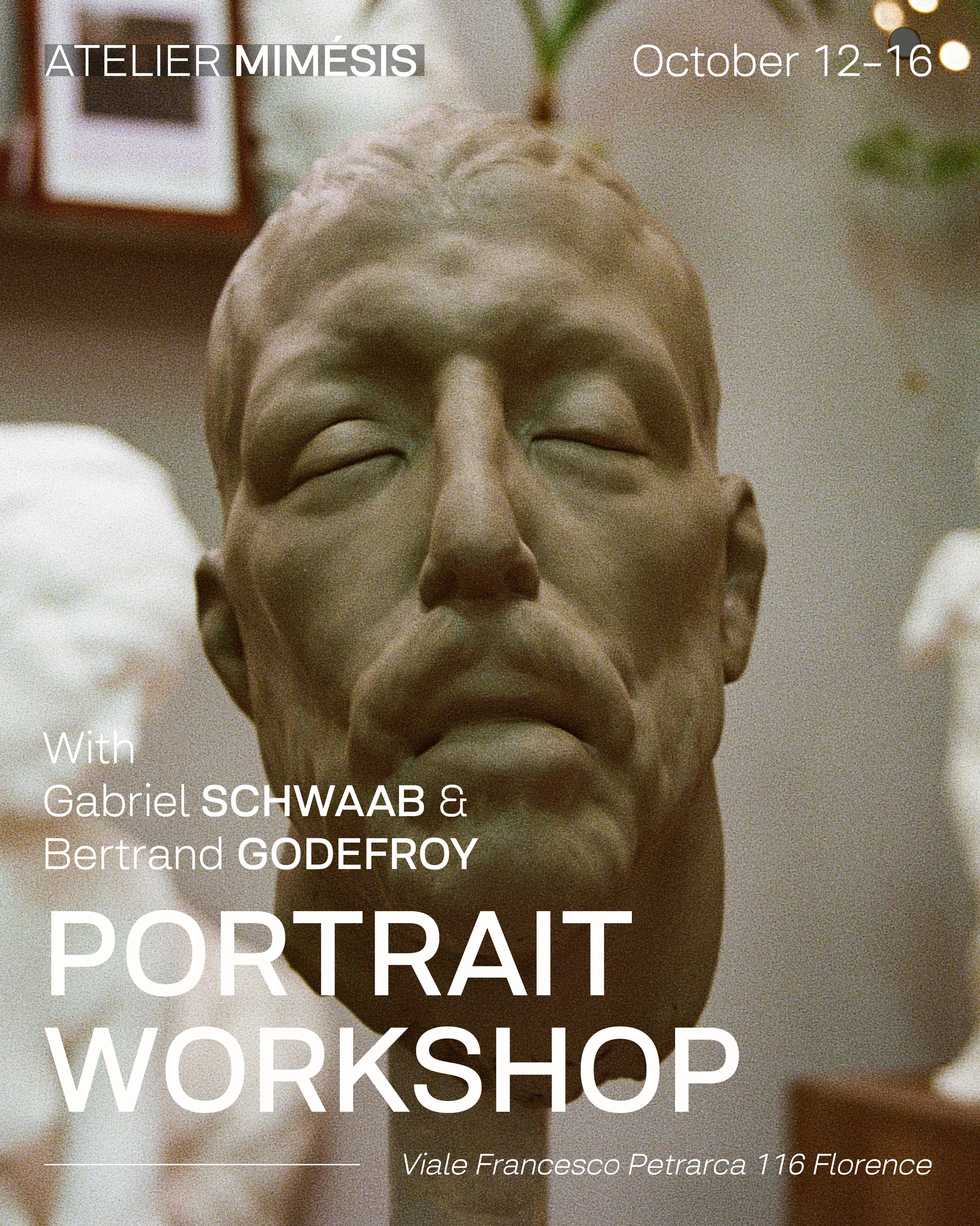 For the fourth workshop of the year 2026 at Atelier Mimésis, join Bertrand Godefroy and Gabriel Schwaab for a portrait sculpture workshop, taking place from October 12 to 16, 2026, in Florence.
