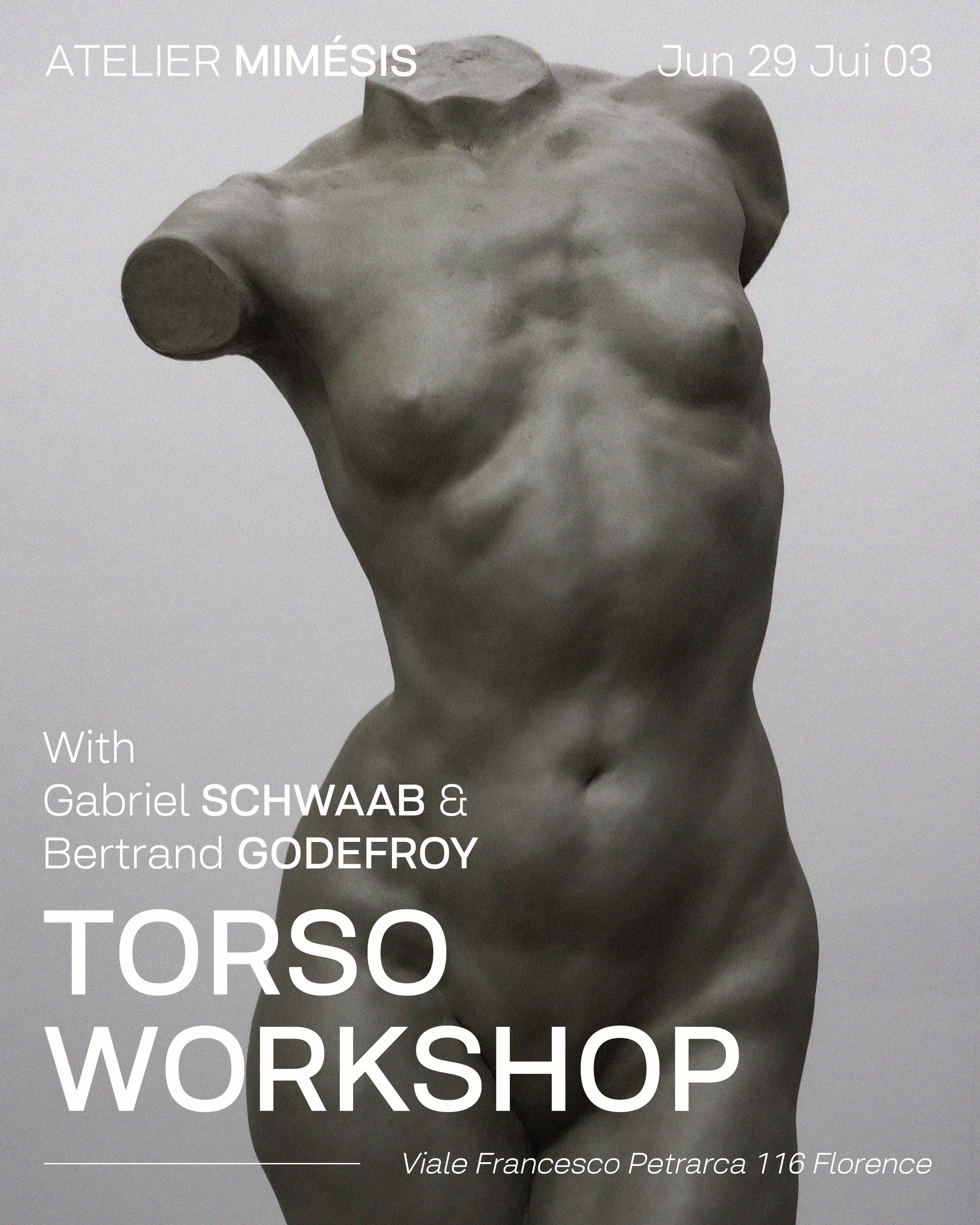 For this third workshop of the year 2026 at Atelier Mimésis, join Bertrand Godefroy and Gabriel Schwaab for a torso modeling workshop, taking place from June 29 to July 3, 2026, in Florence.